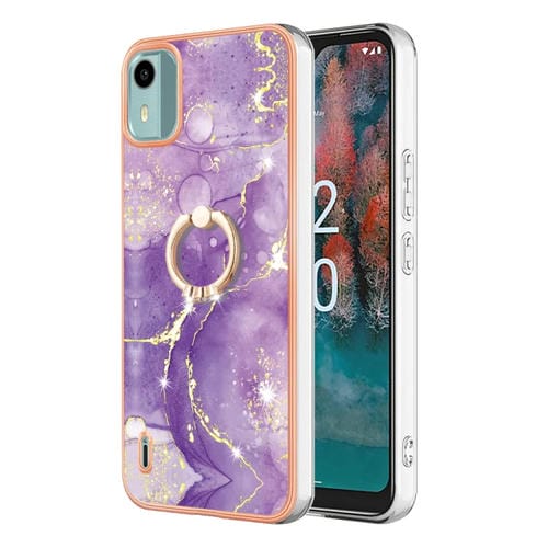 Funda para Nokia C12 Imd TPU Mármol Galvanizado con Soporte para Anillo (Púrpura)
