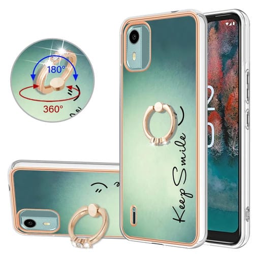 Funda para Nokia C12 Galvanoplastia IMD Doble Cara con Soporte para Anillo (Sonrisa)