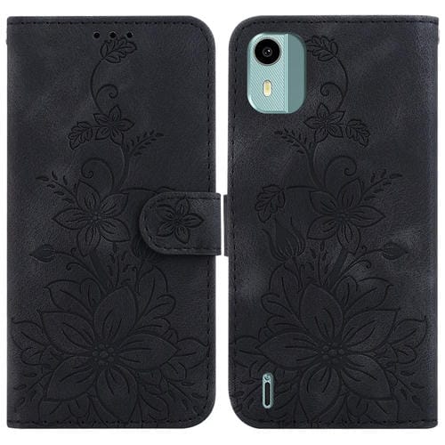 For Nokia C12 Lily Embossed Leather Phone Case Cover (Black)