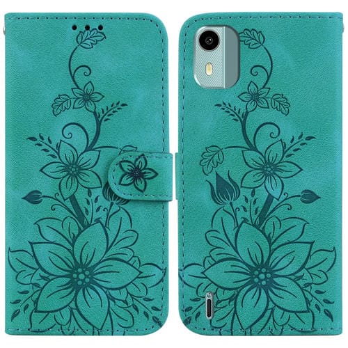For Nokia C12 Lily Embossed Leather Phone Case Cover (Green)