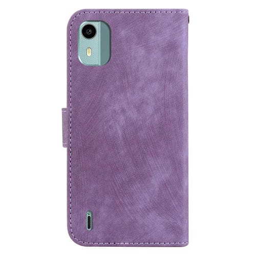 Funda de Cuero para Nokia C12 Little Tiger con Relieve (Púrpura)