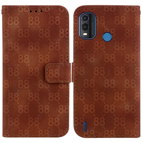 Estuche para Teléfono Nokia C21 de Cuero en Relieve con Doble Forma de 8 (Marrón)