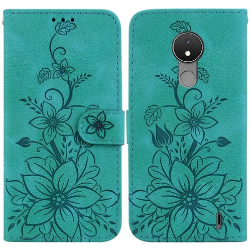 For Nokia C21 Lily Embossed Leather Phone Case(Green)