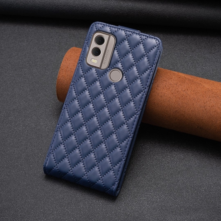 Funda de Cuero con Tapa Vertical para Nokia C22 Diamond Lattice (Azul)