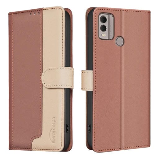 Funda de Cuero Antirrobo RFID para Nokia C22 a Juego de Colores (Marrón)