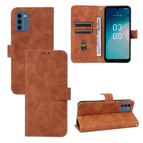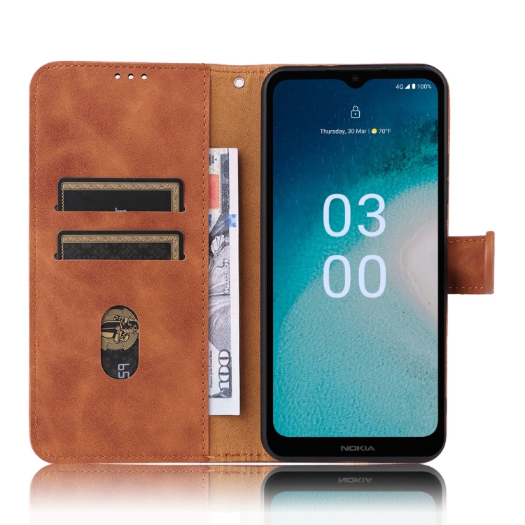 Funda Flip de Piel Magnética para Nokia C300 Skin Feel (Marrón)