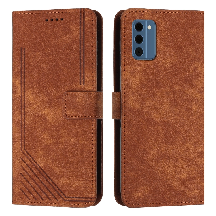 Funda de Cuero para Nokia C300 con Cordón y Diseño Skin Feel Stripe (Marrón)