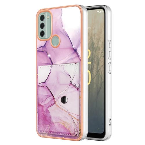 Estuche para Teléfono Nokia C31 con Ranura para Tarjeta IMD y Patrón de Mármol (Oro Rosa Púrpura)