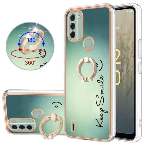 Funda para Nokia C31 Galvanoplastia IMD Doble Cara con Soporte para Anillo (Sonrisa)