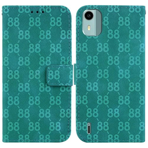 Estuche para Teléfono Nokia C32 de Cuero en Relieve con Doble Forma de 8 (Verde)