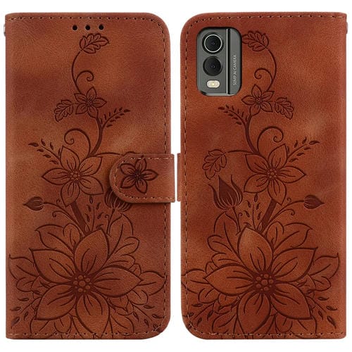 For Nokia C32 Lily Embossed Leather Phone Case Cover (Brown)