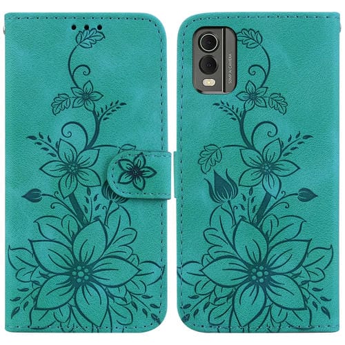 For Nokia C32 Lily Embossed Leather Phone Case Cover (Green)