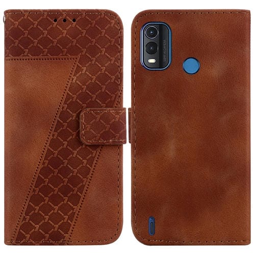 Funda de Cuero En Relieve en Forma de 7 para Nokia G11 Plus (Marrón)