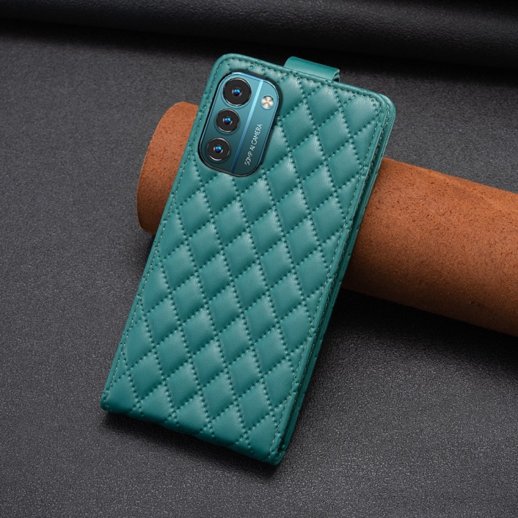 Funda de Cuero con Tapa Vertical para Nokia G21 / G11 Diamond Lattice (Verde)