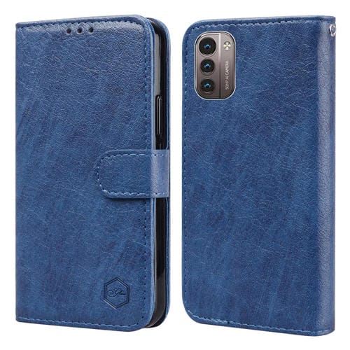 Funda para Teléfono Nokia G21 / G11 PU + TPU Textura de Cuero Aceitoso (Azul Oscuro)