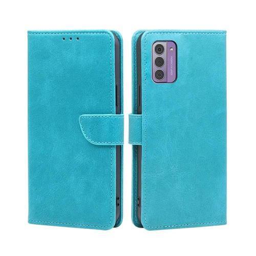 Funda para Nokia G42 5G de Cuero con Tapa, Hebilla y Textura de Becerro (Azul Claro)