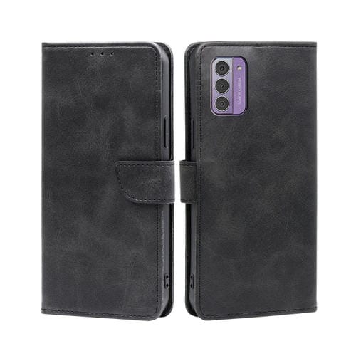 Funda para Nokia G42 5G de Cuero con Tapa, Hebilla y Textura de Becerro (Negro)