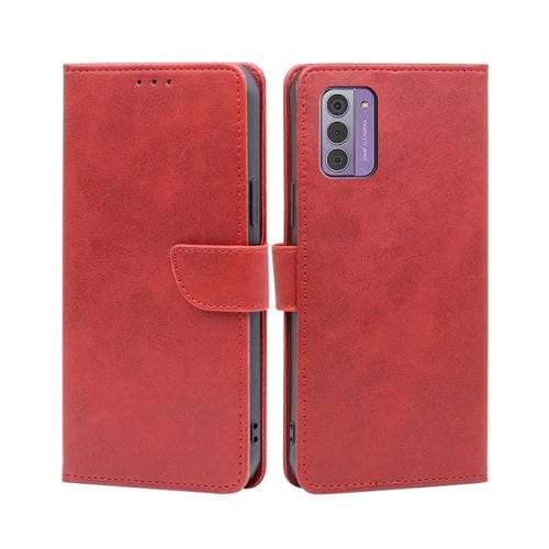 Funda para Nokia G42 5G de Cuero con Tapa, Hebilla y Textura de Becerro (Rojo)