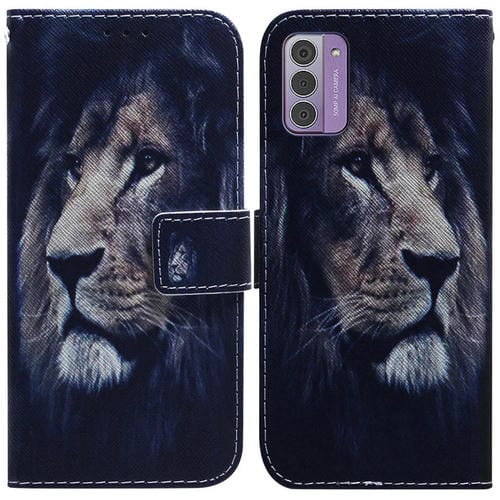 Funda de Cuero con Tapa para Nokia G42 Dibujo León Coloreado