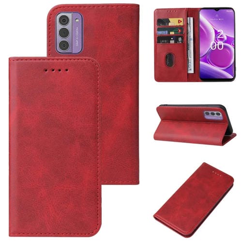 Funda de Cuero para Nokia G42 con Cierre Magnético (Rojo)