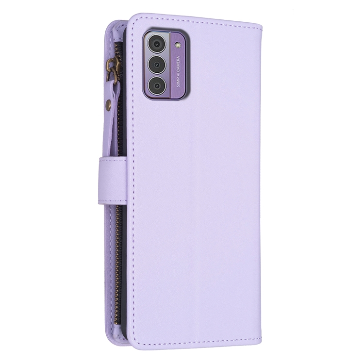 Funda Cartera de Cuero para Nokia G42/G310 con 9 Ranuras para Tarjetas y Cremallera (Morado Claro)