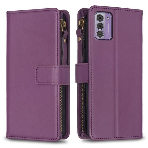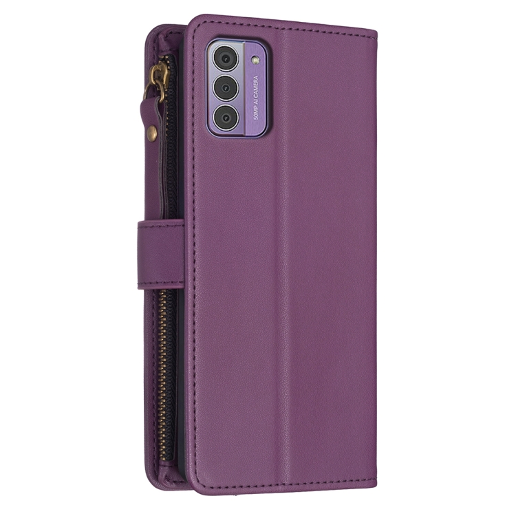 Funda Cartera de Cuero para Nokia G42/G310 con 9 Ranuras para Tarjetas y Cremallera (Morado Oscuro)