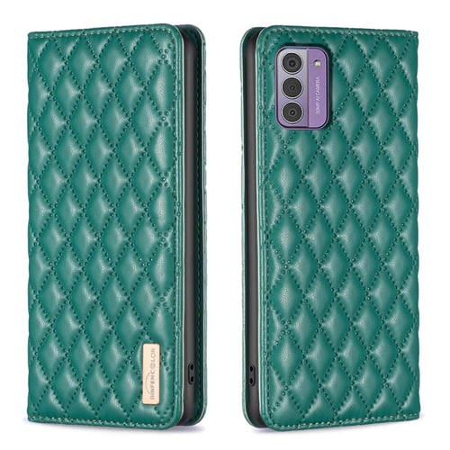 Funda de Cuero para Nokia G42/G310 con Tapa Magnética y Diseño Diamond Lattice (Verde)