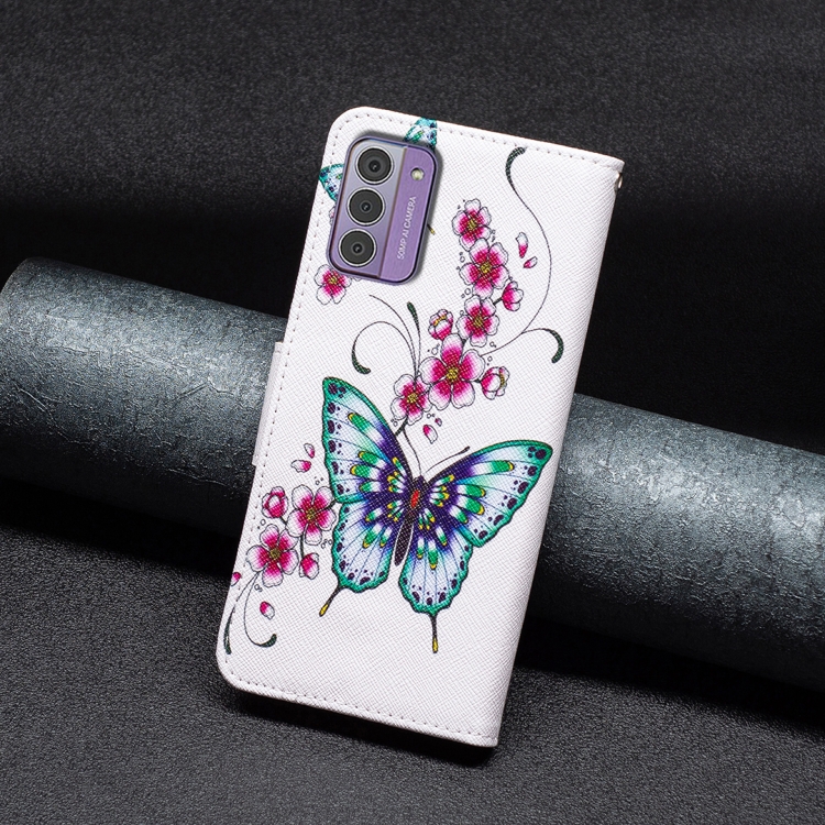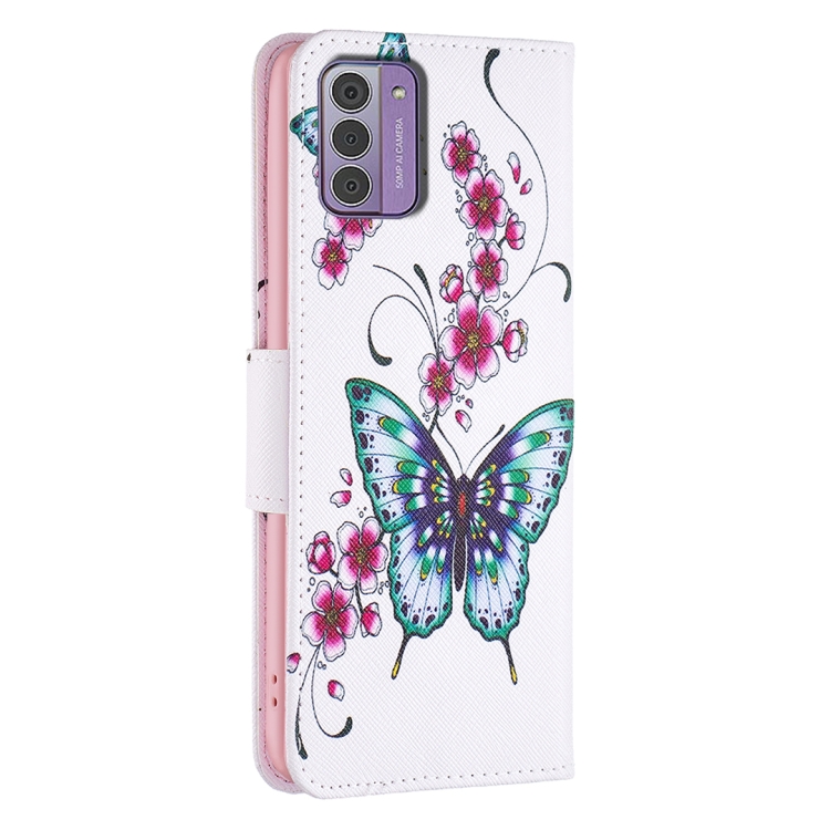 Estuche para Teléfono Nokia G42/G310 de Cuero con Dibujo Mariposa de Flor de Durazno