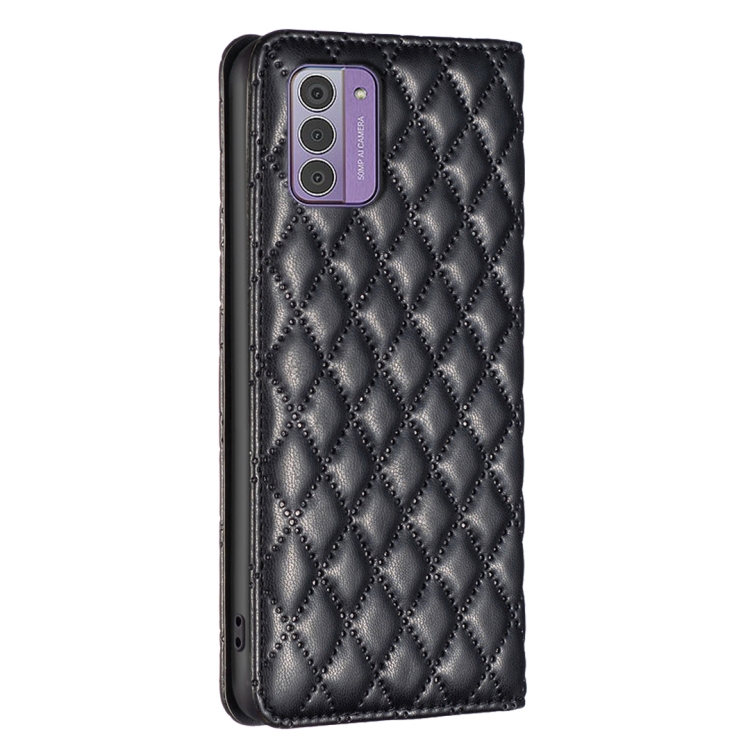 Funda de Teléfono Nokia G42 G310 con Tapa de Cuero Magnético y Entramado de Diamantes (Negro)