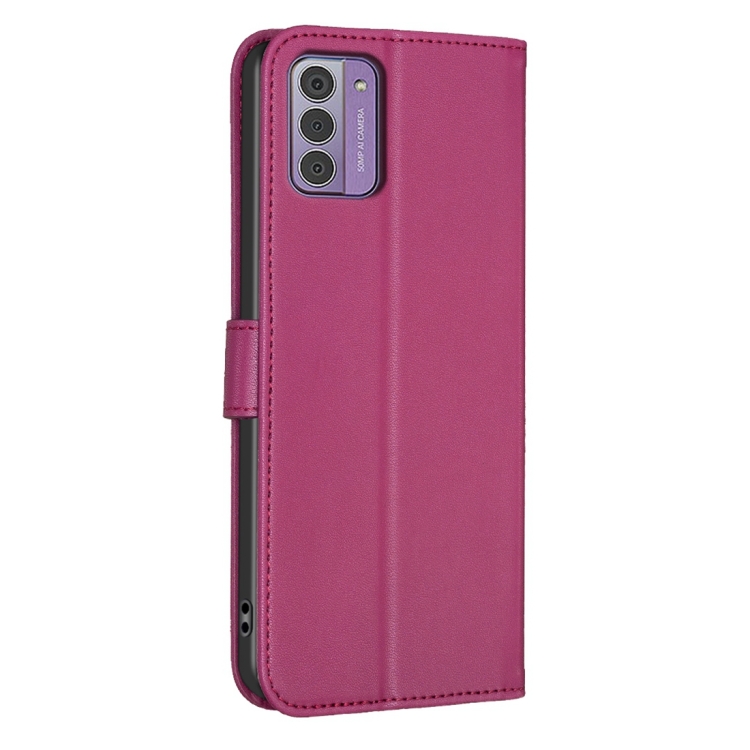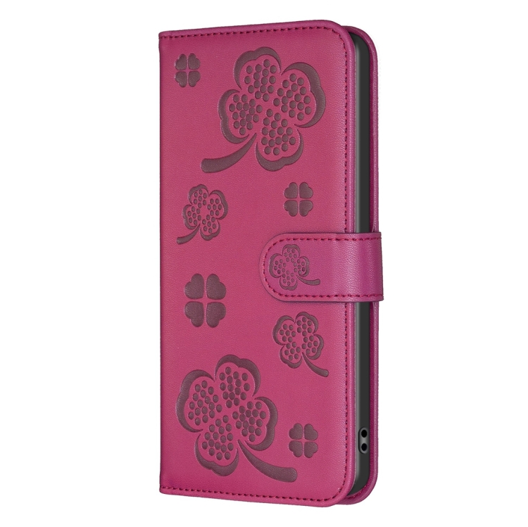 Funda para Teléfono Nokia G42 / G310 de Cuero con Relieve de Cuatro Hojas (Rojo Rosa)
