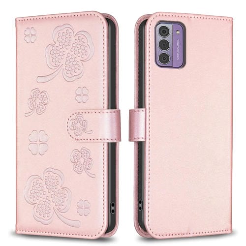Funda para Teléfono Nokia G42 / G310 de Cuero con Relieve de Cuatro Hojas (Rosa)