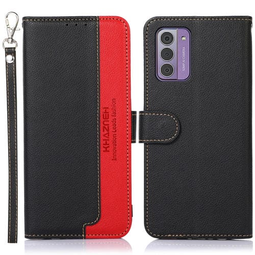 Funda para Nokia G42 Khazneh con Textura Litchi de Cuero y Protección RFID (Negro)