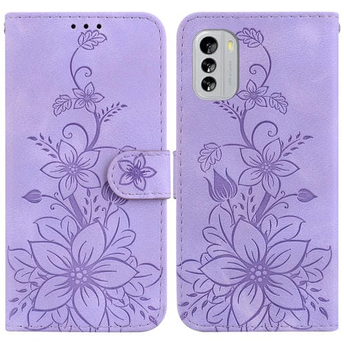 For Nokia G60 Lily Embossed Leather Phone Case (Purple)