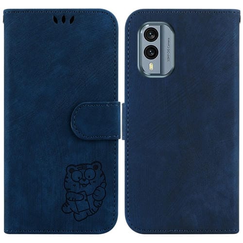 Funda de Cuero para Nokia X30 con Relieve Little Tiger (Azul Oscuro)