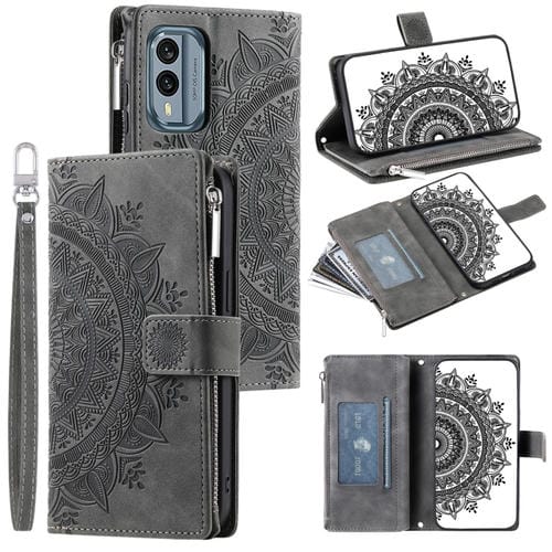 Funda para Nokia X30 de Cuero con Cremallera Totem y MultiTarjeta (Gris)