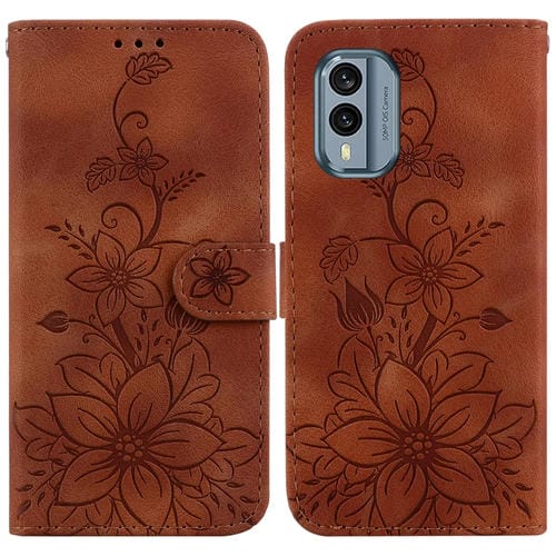 For Nokia X30 Lily Embossed Leather Phone Case (Brown)