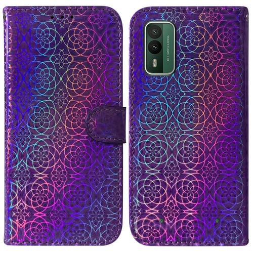 Funda de Cuero para Nokia Xr21 con Hebilla Magnética Colorida (Púrpura)