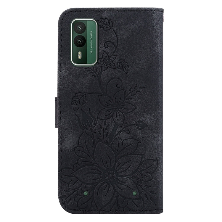 For Nokia XR21 Lily Embossed Leather Phone Case(Black)