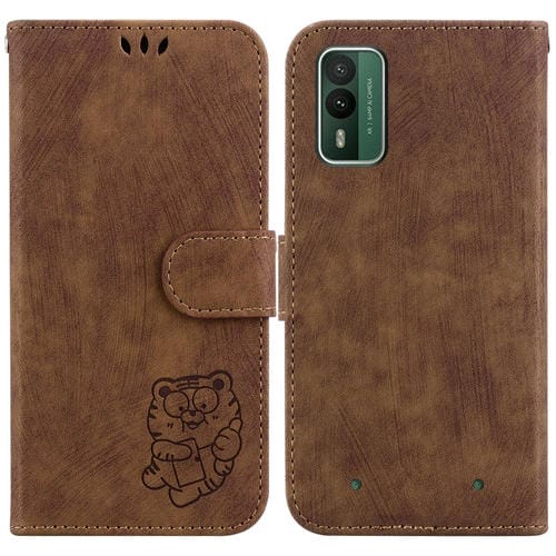 For Nokia XR21 Little Tiger Embossed Leather Phone Case(Brown)