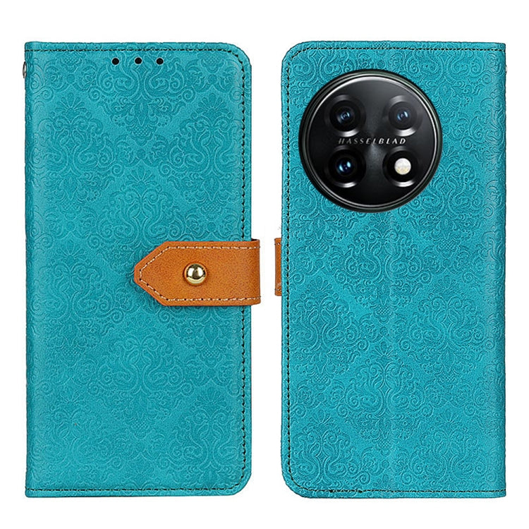 - 1x Estuche para OnePlus 11 5G de Cuero con Tapa en Relieve Floral Europeo (Azul)