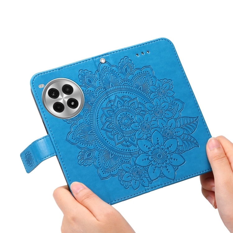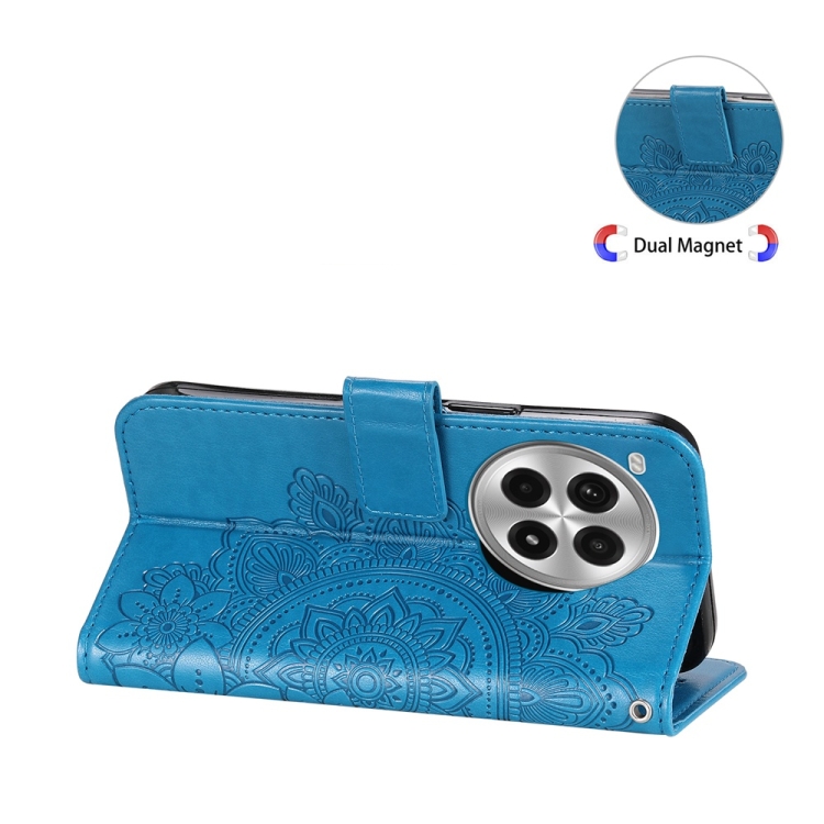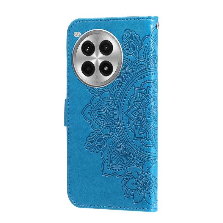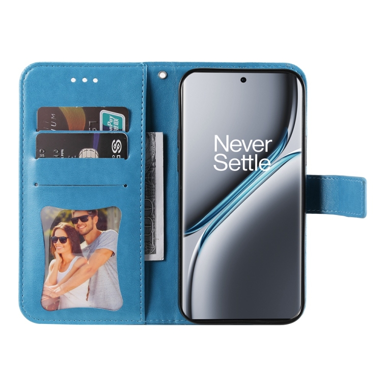 Funda para OnePlus Ace 3 Pro de Cuero con Estampado de Flores de Siete Pétalos (Azul)