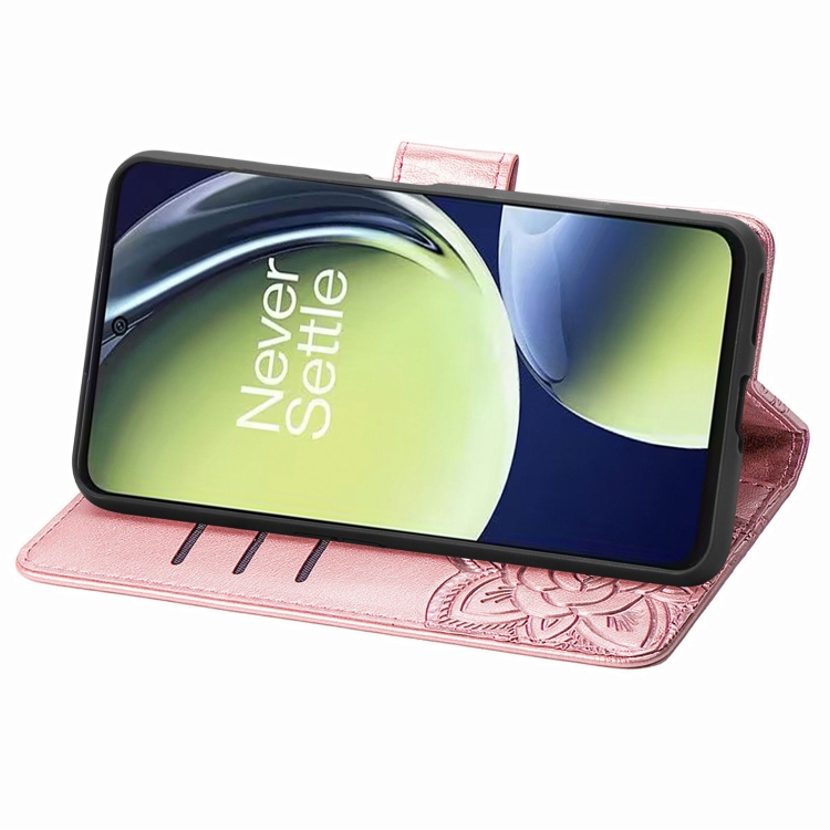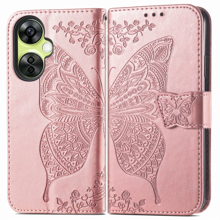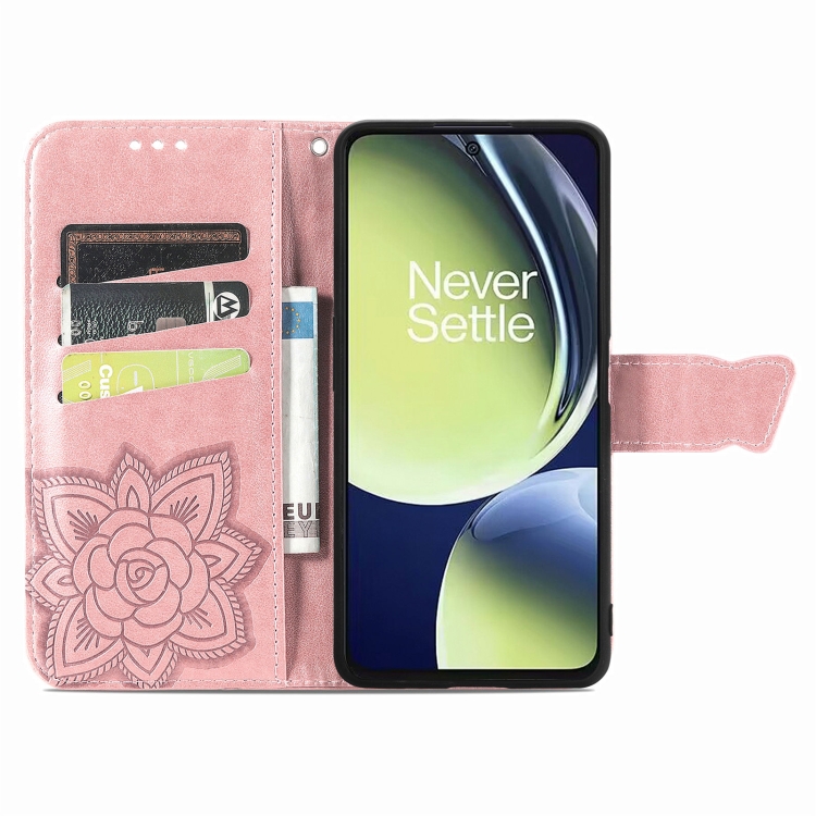 - 1x Estuche para OnePlus Nord CE 3 Lite de Cuero en Relieve Butterfly Love Flower (Oro Rosa)