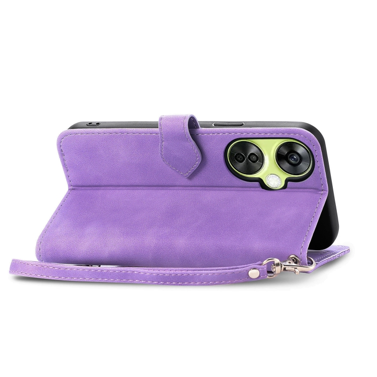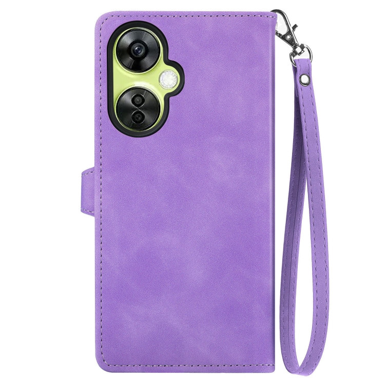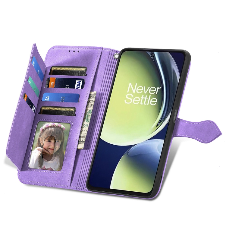 - 1x Estuche para OnePlus Nord CE 3 Lite de cuero con cremallera y flor en relieve (Púrpura)