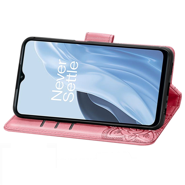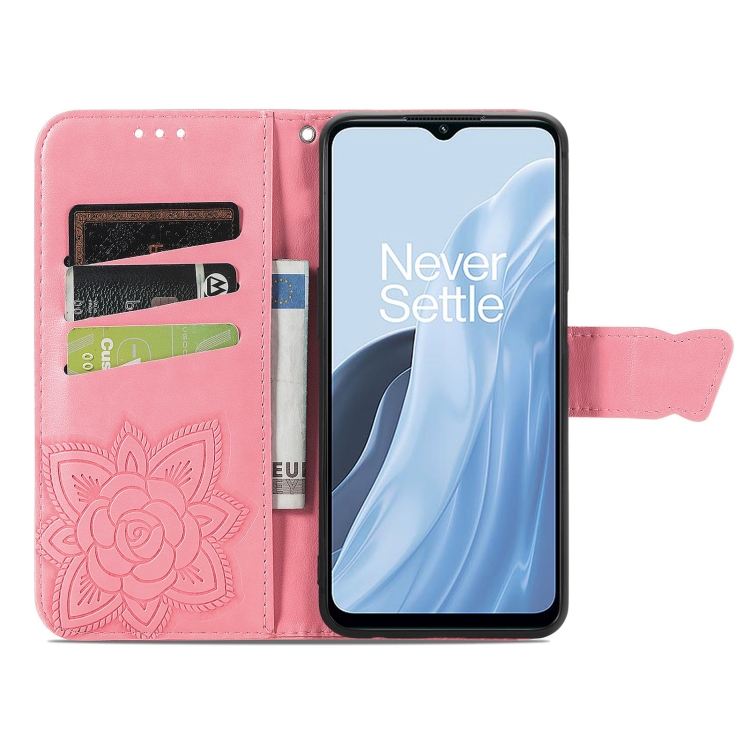 - 1x Funda de Cuero para OnePlus Nord N300 con Tapa en Relieve Butterfly Love Flower (Rosa)