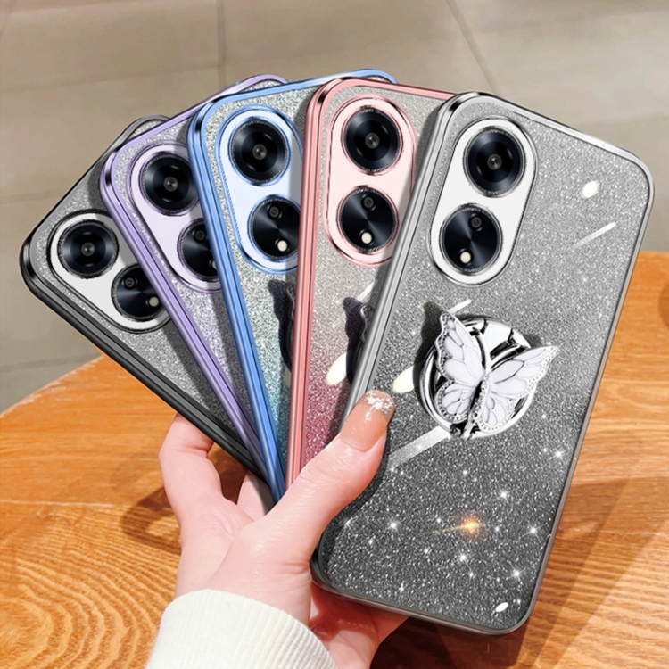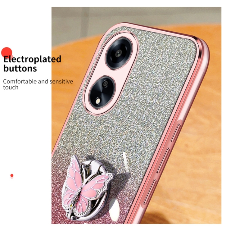 Para Oppo A1 5G Funda para Teléfono de TPU con Soporte de Mariposa con Brillo Degradado Plateado (Rosa)