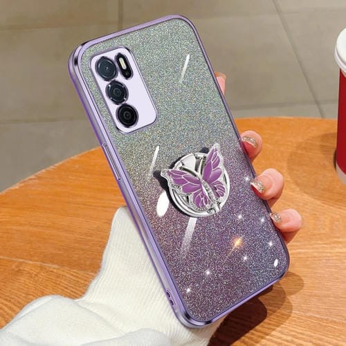 Para Oppo A16 Funda para Teléfono de TPU con Soporte de Mariposa con Brillo Degradado Plateado (Púrpura)
