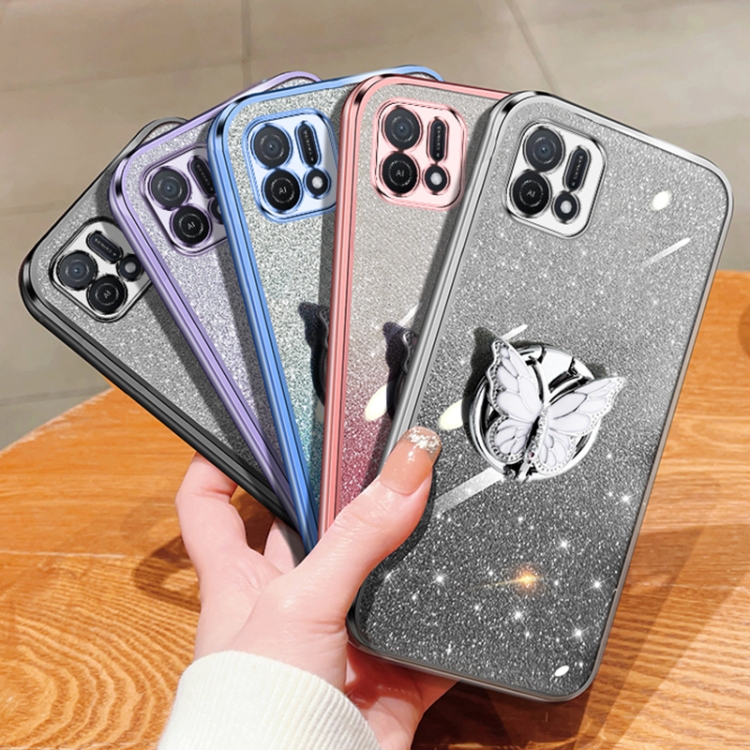 Para Oppo A16K Estuche para Teléfono de TPU con Soporte de Mariposa con Brillo Degradado Plateado (Plata)