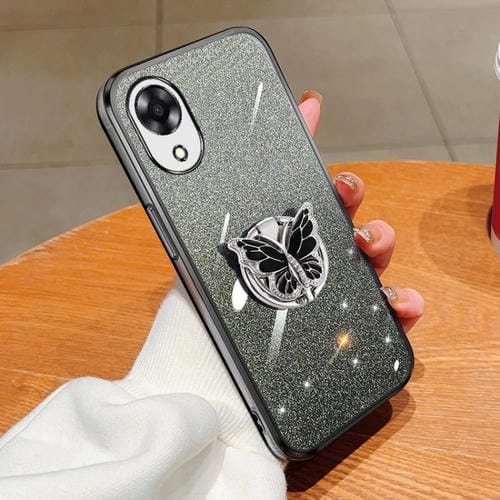 Para Oppo A17K Estuche para Teléfono de TPU con Soporte de Mariposa con Brillo Degradado Plateado (Negro)