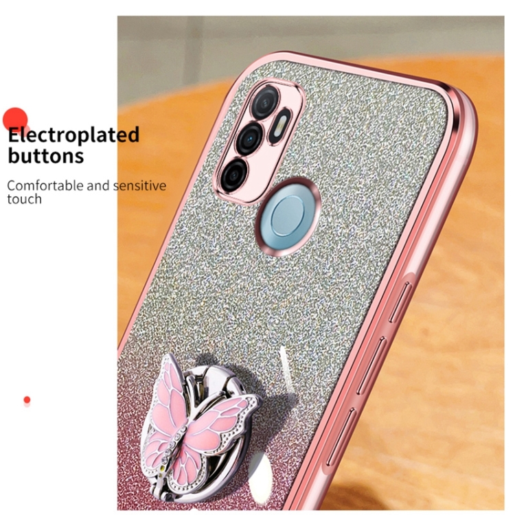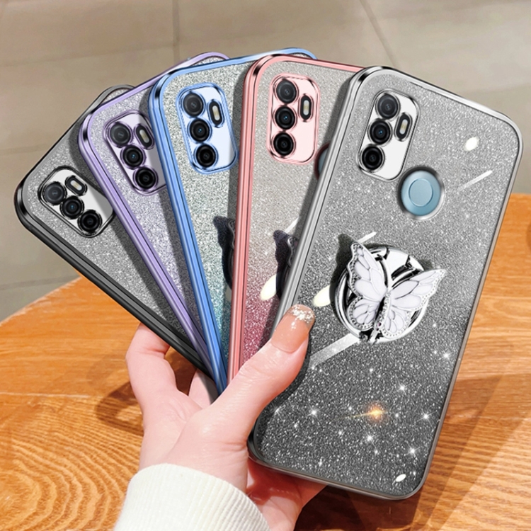 Para Oppo A32 Funda para Teléfono de TPU con Soporte de Mariposa con Brillo Degradado Plateado (Plata)