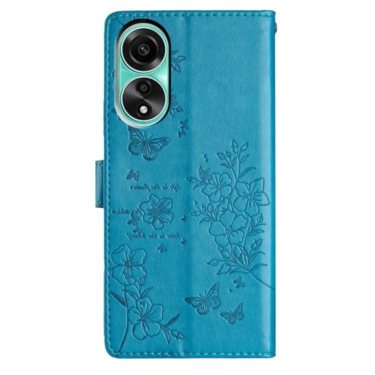 Para Oppo A38 4G / A18 Funda para Teléfono de Cuero con Relieve de Flor de Amor y Mariposa (Azul)